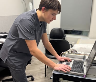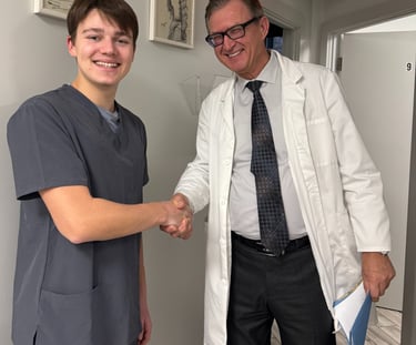 Hands-on shadowing experience in neurology, prosthetics, and internal medicine — observing patient care, precision work, and medical teamwork.