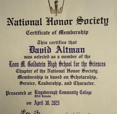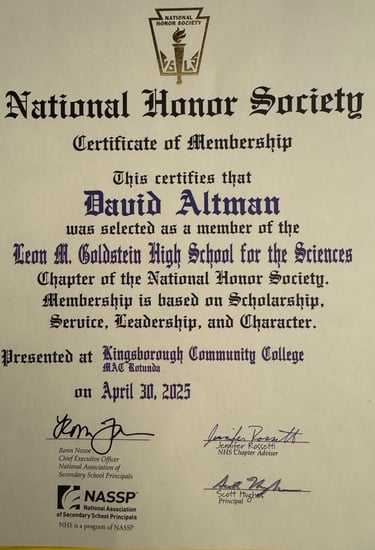 Leon M. Goldstein High School junior (Class of 2026) with a strong interest in advanced science and a background in competitive discipline.